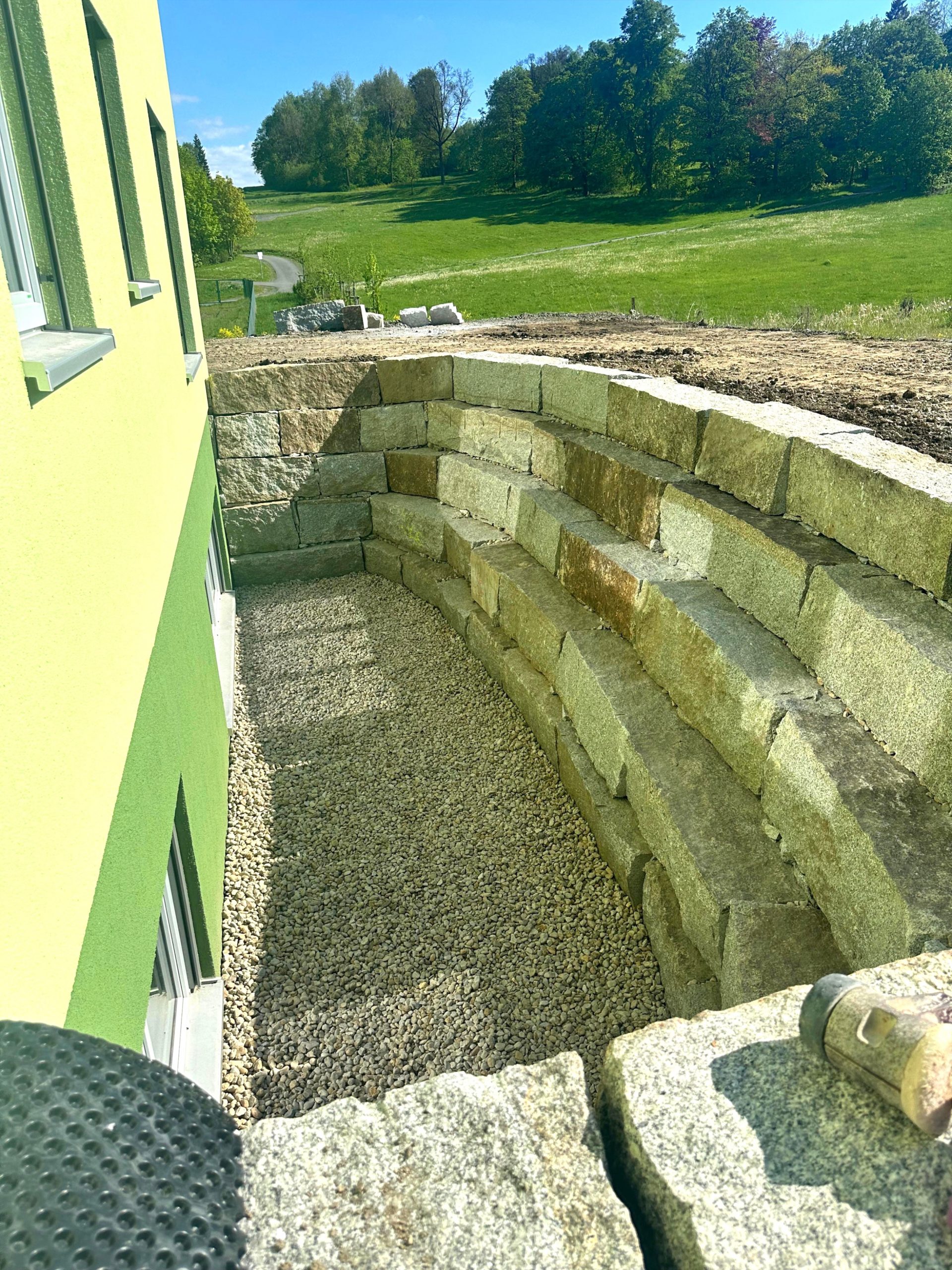 Mit Naturstein bringen wir Charakter und Beständigkeit in Ihren Garten. Ob als stilvolle Mauer, als funktionale Treppenanlage oder als hochwertiger Pflasterbelag – Naturstein ist vielseitig einsetzbar und überzeugt durch seine natürliche Schönheit.